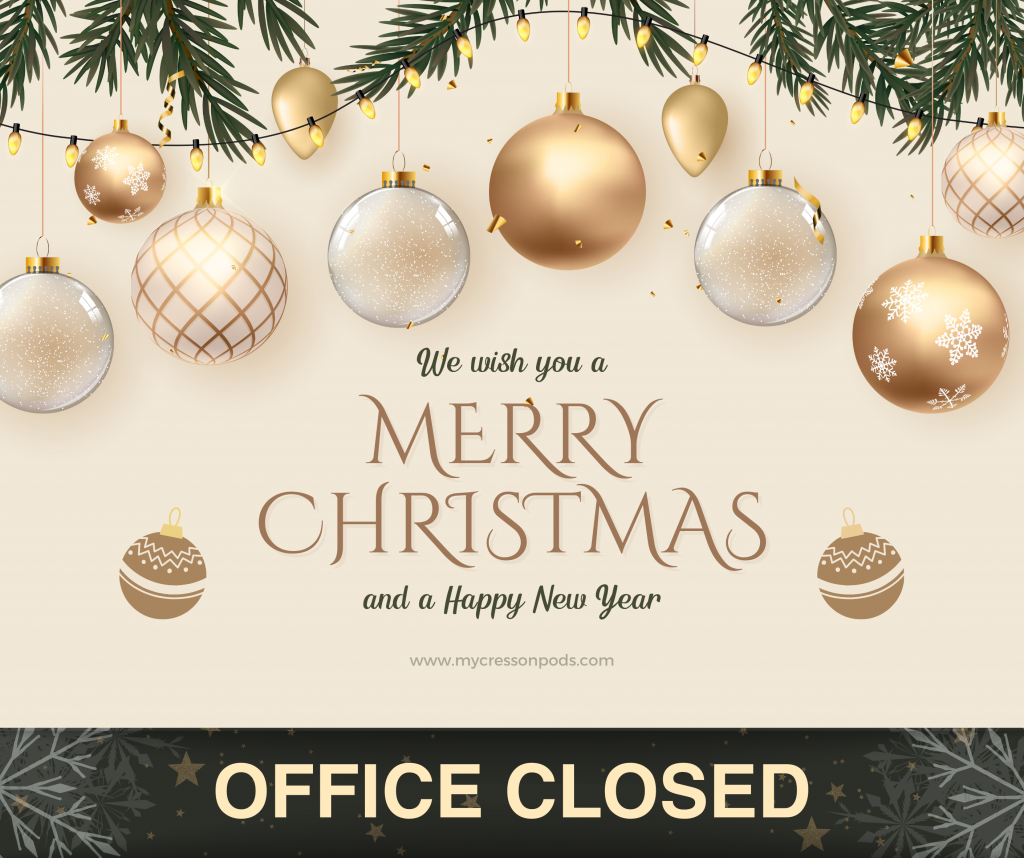 Cresson Pods Office (Admin & Maintenance Team) will be CLOSED.