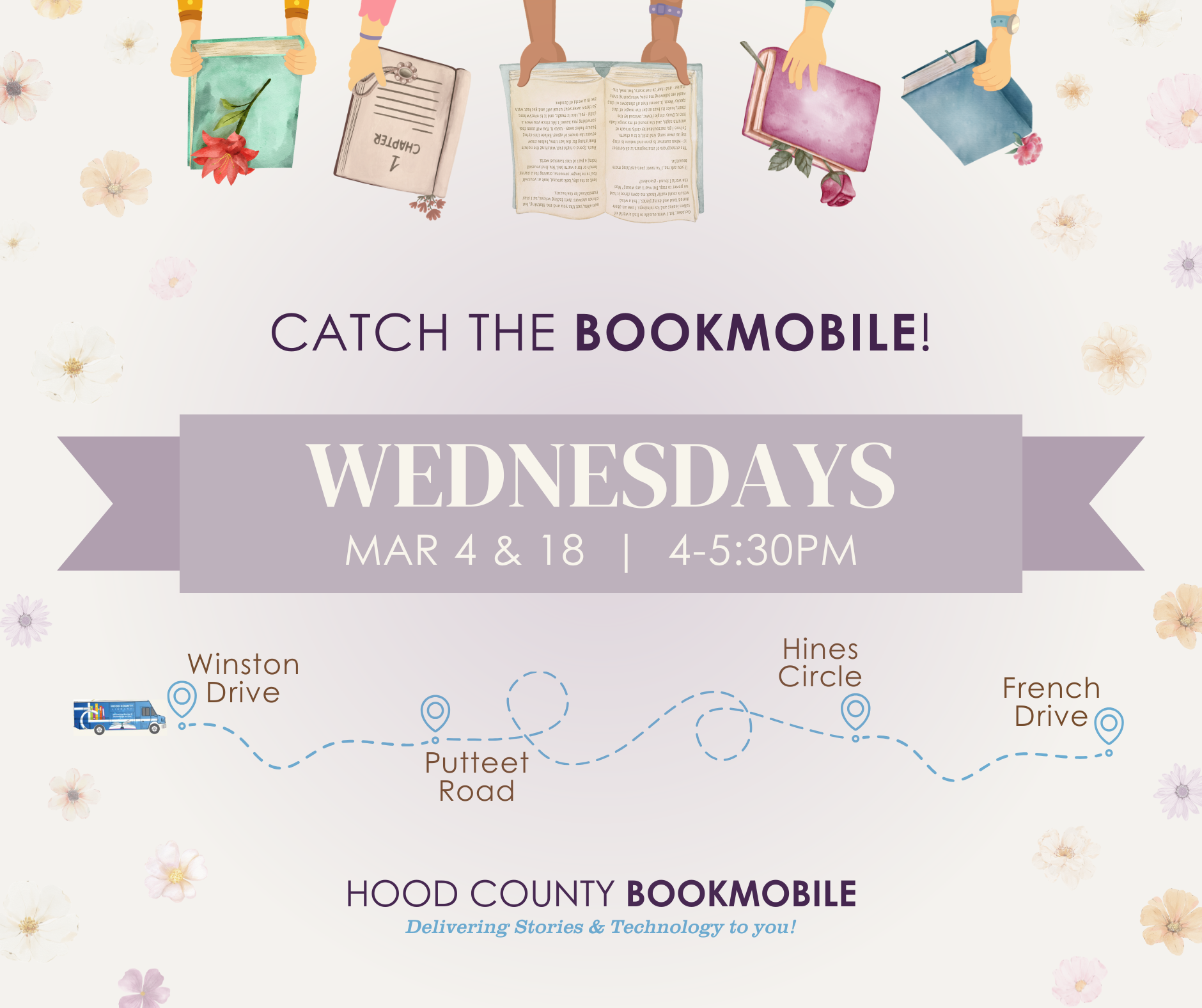 ππ· Itβs time to March into Spring! Bookmobile blooms through Winston β Putteet β Hines β Frenchβatleast 20 mins on each stop!